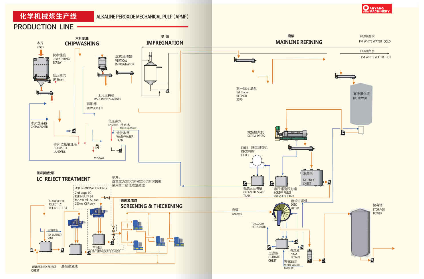APMP紙漿工藝主要特征包括色漿高度潔白、產(chǎn)量高、使用化學(xué)品、低污染等,其是一個(gè)高產(chǎn)紙漿新工藝。漂白過程中使用化學(xué)品和藥物較少,APMP紙漿與化學(xué)紙漿(其產(chǎn)生大量黑液)不同,因此,該APMP工藝對環(huán)境無污染。