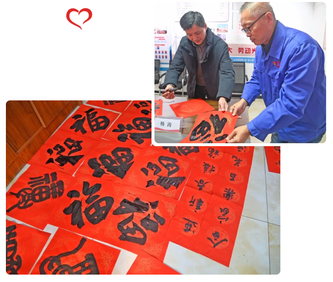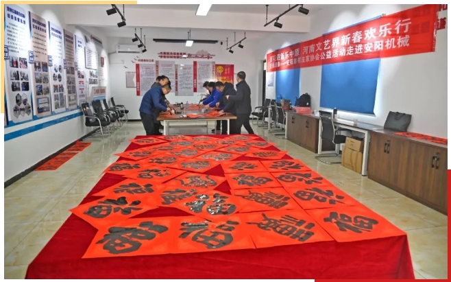 春聯(lián)是一種文化藝術(shù),也是一種文化傳承和情感表達,寄托著人們對美好生活的向往和追求。為深入學習貫徹落實習近平文化思想,進一步傳承中華優(yōu)秀傳統(tǒng)文化,豐富廣大職工精神文化生活,2024年1月29日下午安陽市書法家協(xié)會舉辦的“百花迎新樂中原——萬福迎春”義寫春聯(lián)公益活動走進中國聯(lián)合裝備集團安陽機械有限公司,為企業(yè)一線廣大職工送上新春祝福。